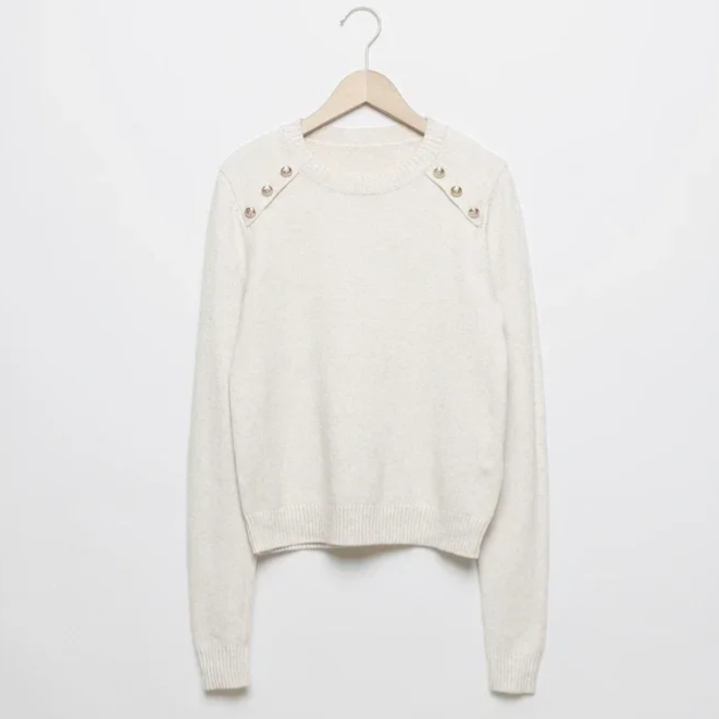 Tejido de punto. Diseño recto. Cuello redondo. Manga larga. Terminaciones en rib. Botones decorativos. Talla única.