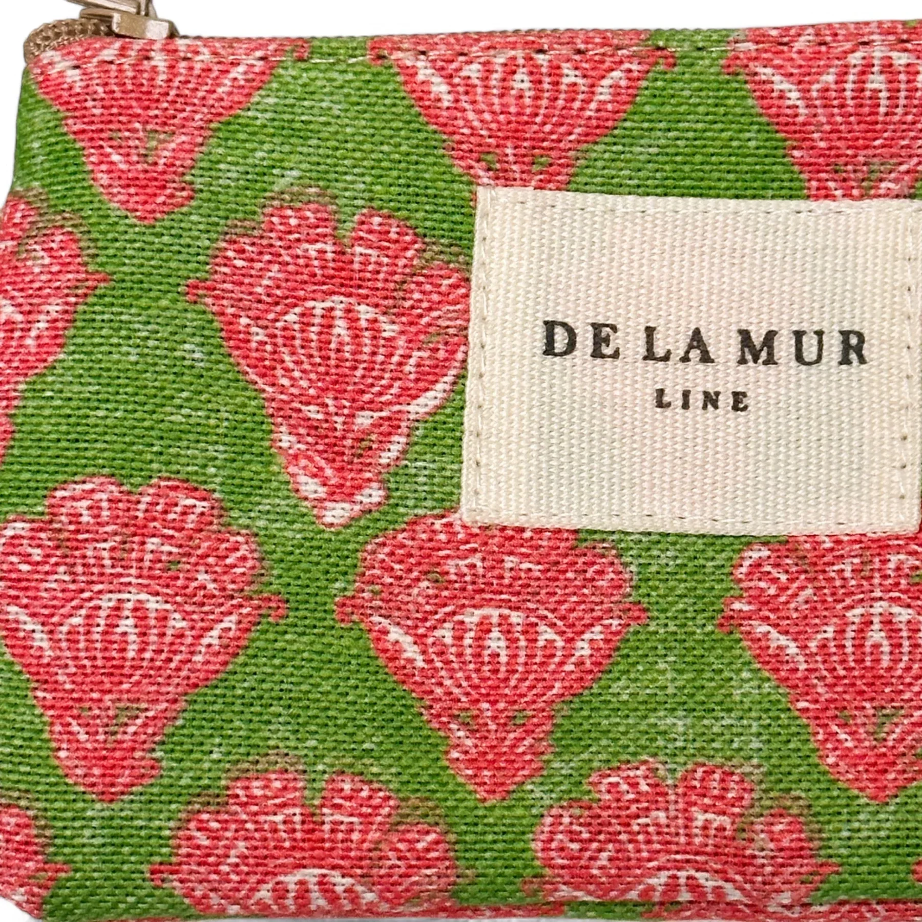 Monedero con cremallera en la parte superior y pequeña asa de cordón de color beige en el lateral. Con tejido fino de half-panama con estampado de flores en tonos rosa y verde. Cada articulo puede tener una variación en el estampado, dependiendo de donde se haya efectuado el corte de la pieza. Forrado de tejido grueso de color gris en la parte interior. Para su correcto mantenimiento se aconseja lavarlo en frío a mano y no utilizar secadora.