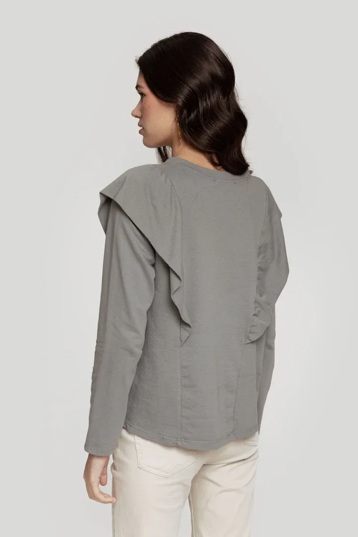 Tejido de mezcla de algodón. Diseño básico. Diseño amplio. Diseño recto. Cuello redondo. Manga larga. Interior forrado. Detalle volante amplio.