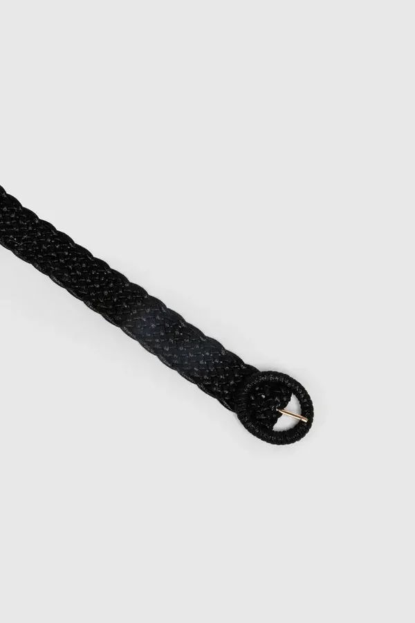 Diseño trenzado. Diseño metalizado. Hebilla ovalada. Cierre de gancho ajustable. Medidas: 110.0 x 5.0 cm.