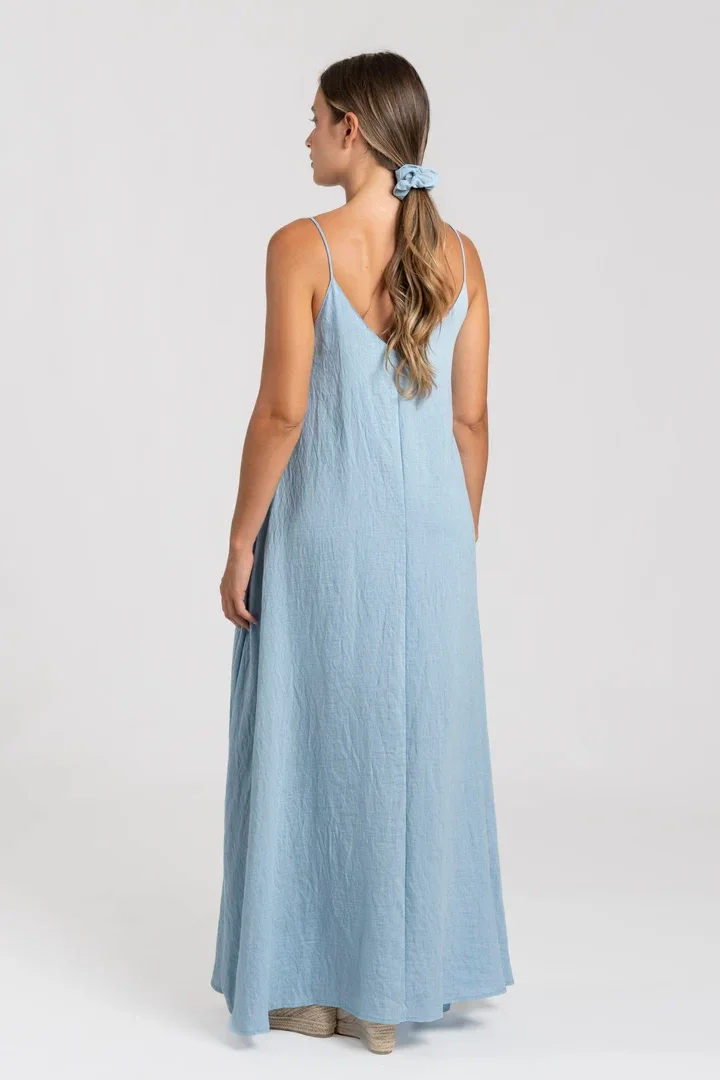 Tejido fluido. Diseño largo. Diseño evasé. Cuello pico. Manga tirante. Detalle pliegue. Con bolsillos. Forrado. Talla única.
