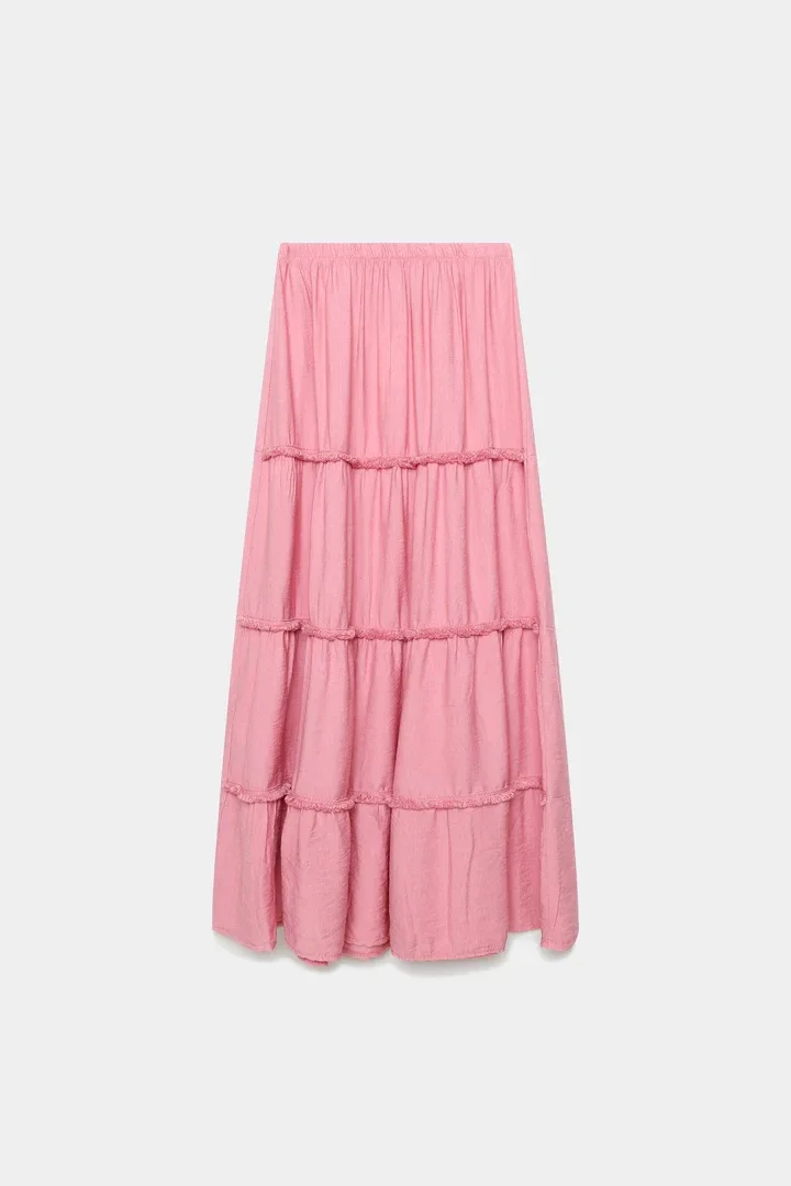 Tejido fluido. Diseño midi. Diseño vuelo. Cintura elástica.