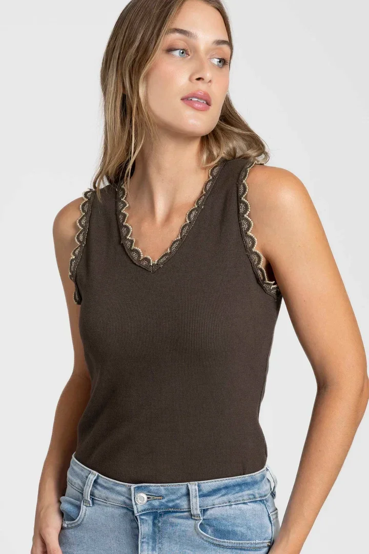 Tejido mezcla algodón. Escote pico. Manga sisa. Detalle bordados.
