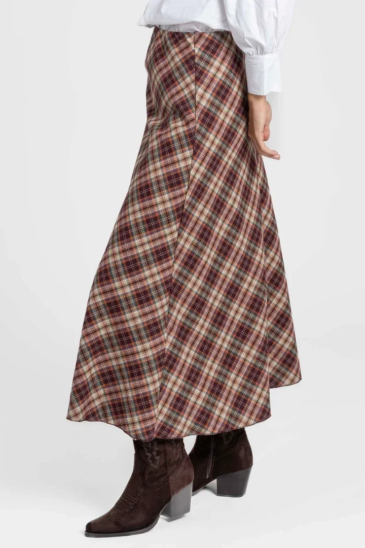 Descripción: tejido mezcla de algodón. Diseño cuadros. Diseño midi. Cintura elástica.