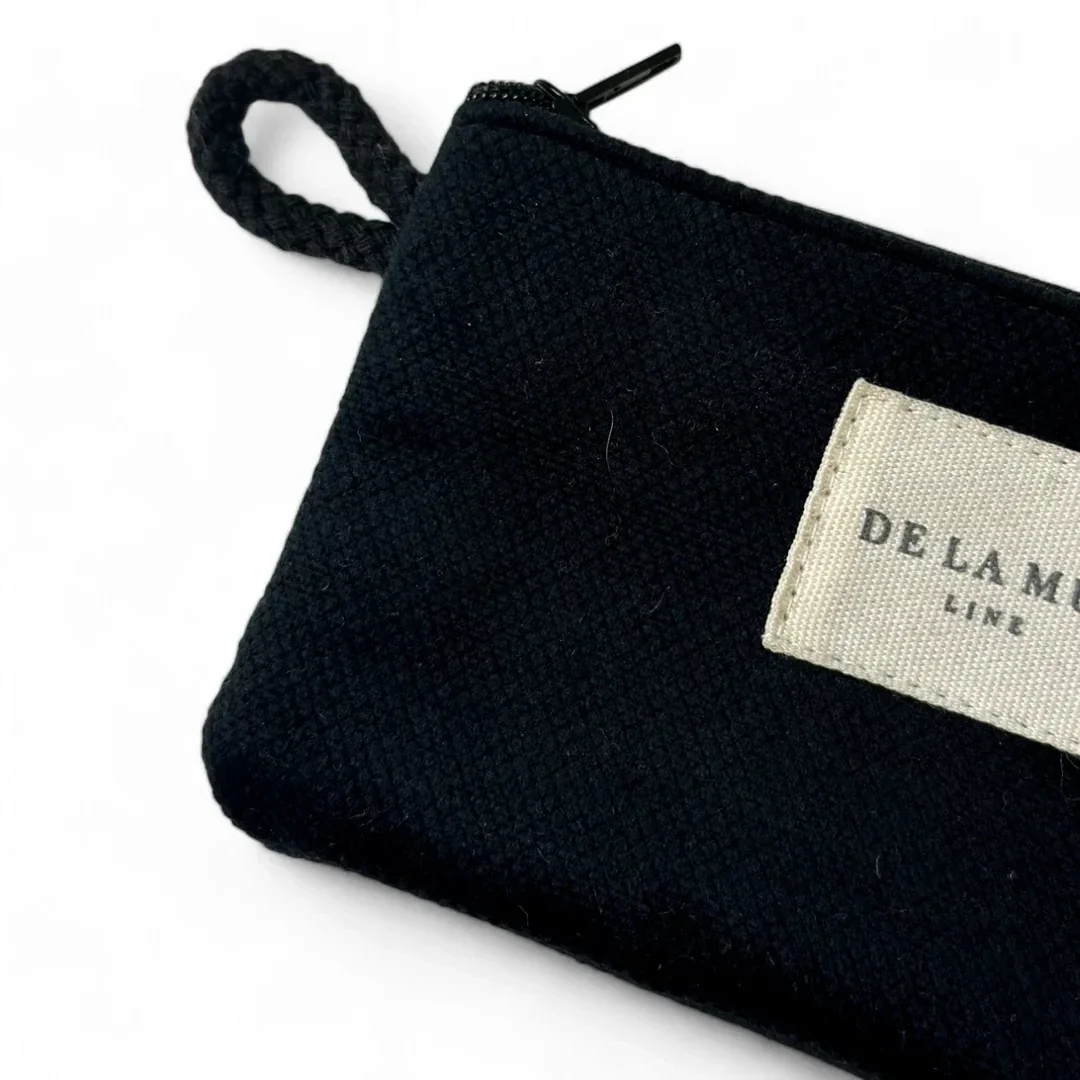 Monedero con cremallera en la parte superior y pequeña asa de cordón de color negro en el lateral. Con tejido grueso de terciopelo negro. Cada articulo puede tener una variación en el estampado, dependiendo de donde se haya efectuado el corte de la pieza. Forrado de tejido grueso de color gris en la parte interior. Para su correcto mantenimiento se aconseja lavarlo en frío a mano y no utilizar secadora.