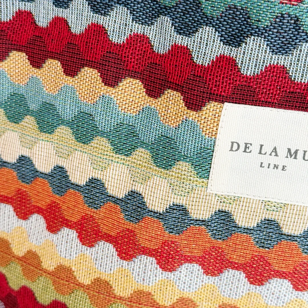 Bolsa "tote bag" con asas para llevar al hombro. Con tejido grueso de jacquard con estampado geométrico multicolor. Para su correcto mantenimiento se aconseja lavarlo en frío y no utilizar secadora.